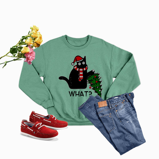 Cat Christmas Tree Sweatshirt Cozy Cotton Fleece For Women Premium Comfort USA Made