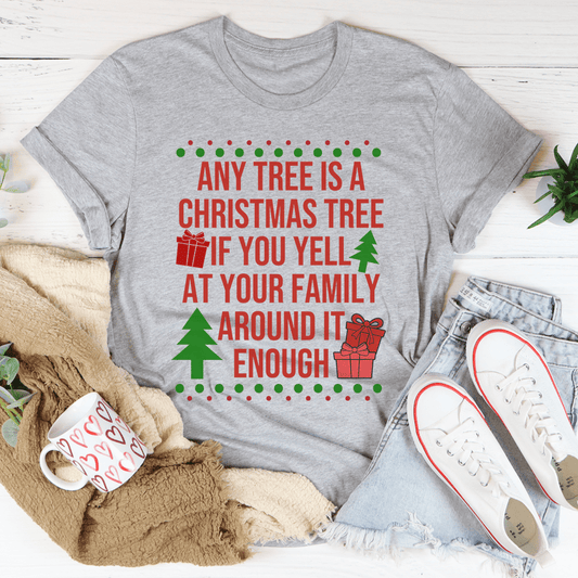 Any Tree Is A Christmas Tree Tee For Holiday Shoppers With Soft Cotton Comfort Premium Cozy Style
