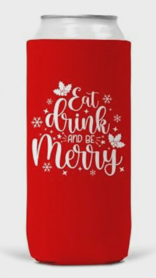 Slim Can Coozie Eat Drink Be Merry Christmas 12oz Keeps Drinks Cold with Hook Premium Gift Idea