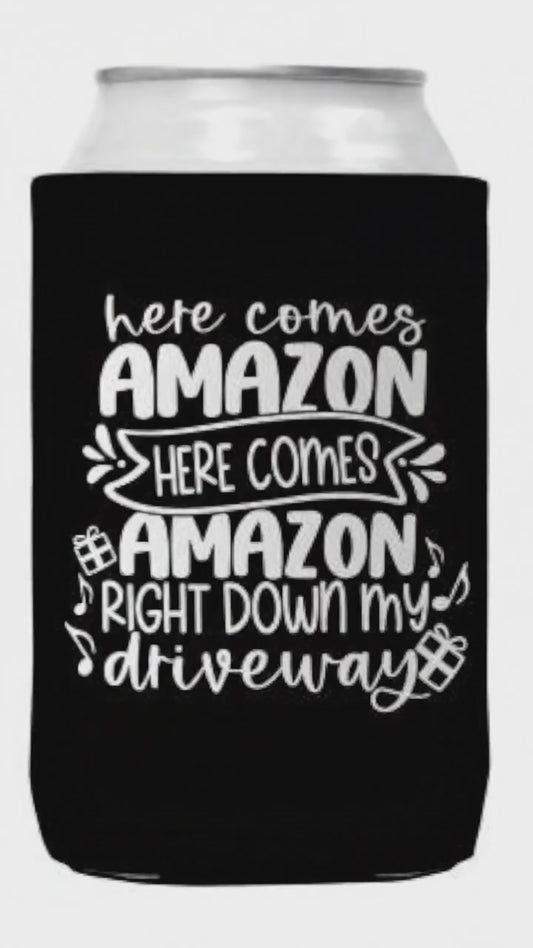 Christmas Can Koozie Collapsible Neoprene 12oz For Here Comes Amazon Fans Premium Gift Idea