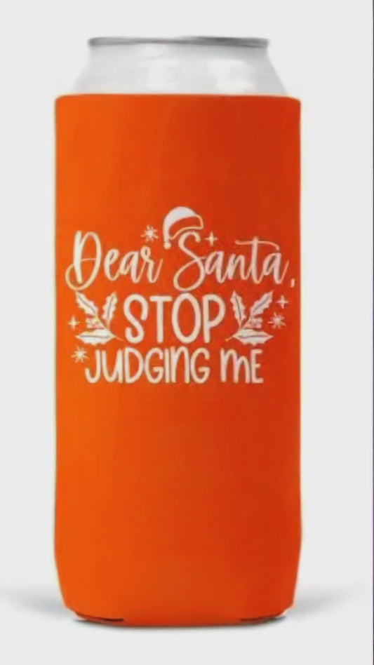 Slim Can Coozie Dear Santa Stop Judging Me Christmas 12oz Keeps Cans Cold Gift for Christmas Fans
