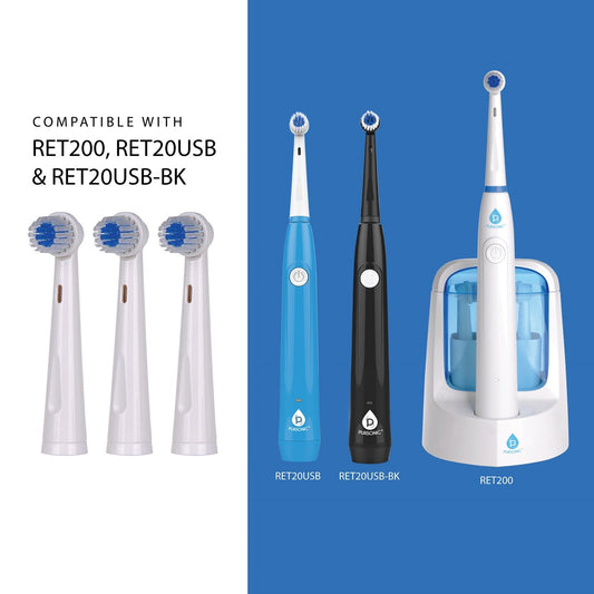 Pursonic Replacement Brush Heads For RET20USB And RET200 3 Pack Plaque Removal
