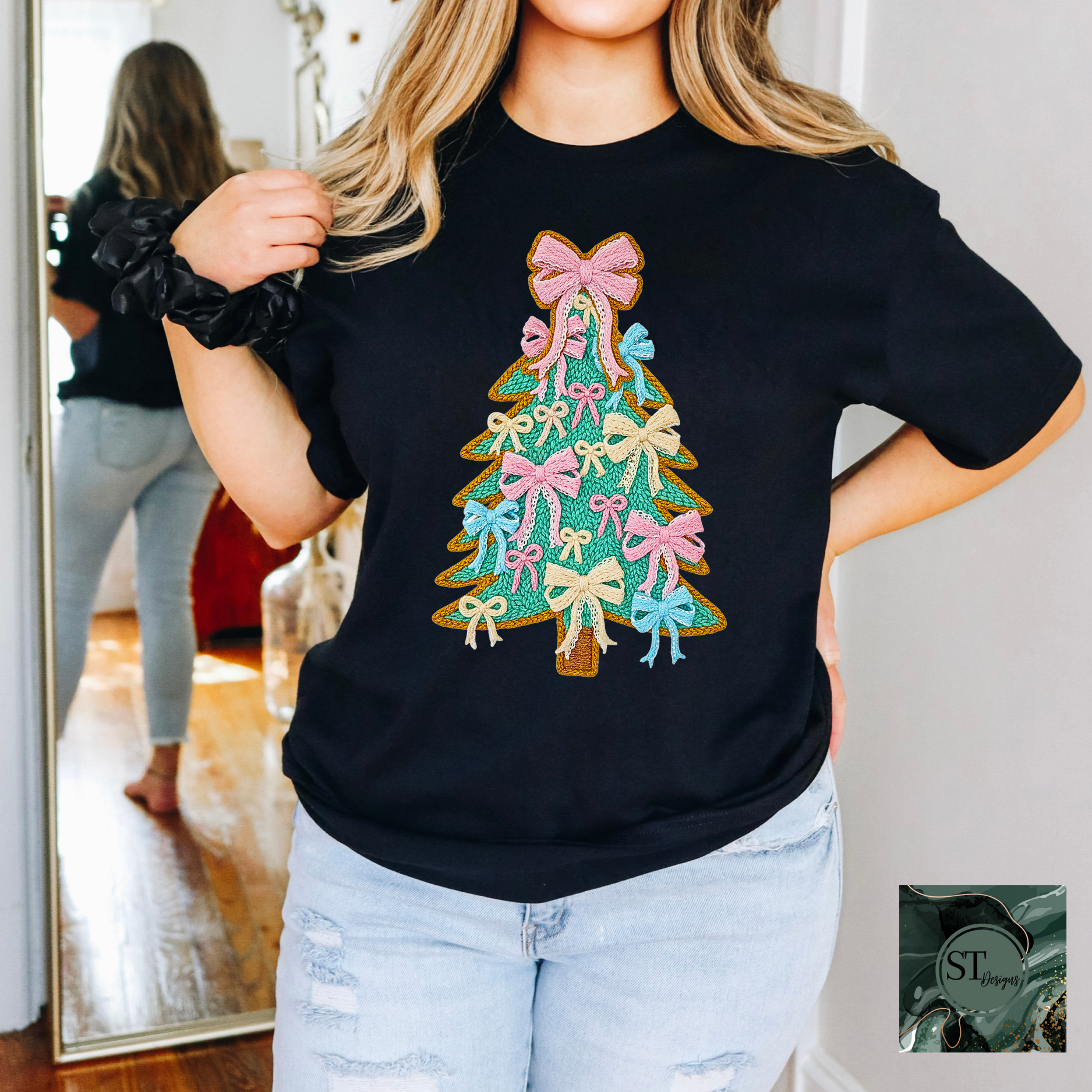 Christmas Tree Bows Faux Yarn Lightweight Durable Inks Colorful Decor For Holiday Lovers Printed In USA Size S To 5XL