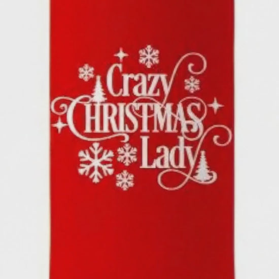 Crazy Christmas Lady Christmas Can Coozie Cooler 12oz Slim Cans. Screen printed on a thick, quality collapsible neoprene can coozie / can cooler. Fits standard slim cans such as energy drinks, seltzer drinks, and skinny beers. Comes with attached C hook to attach to peg or display. Crazy Christmas Lady Christmas Slim Koozie.
