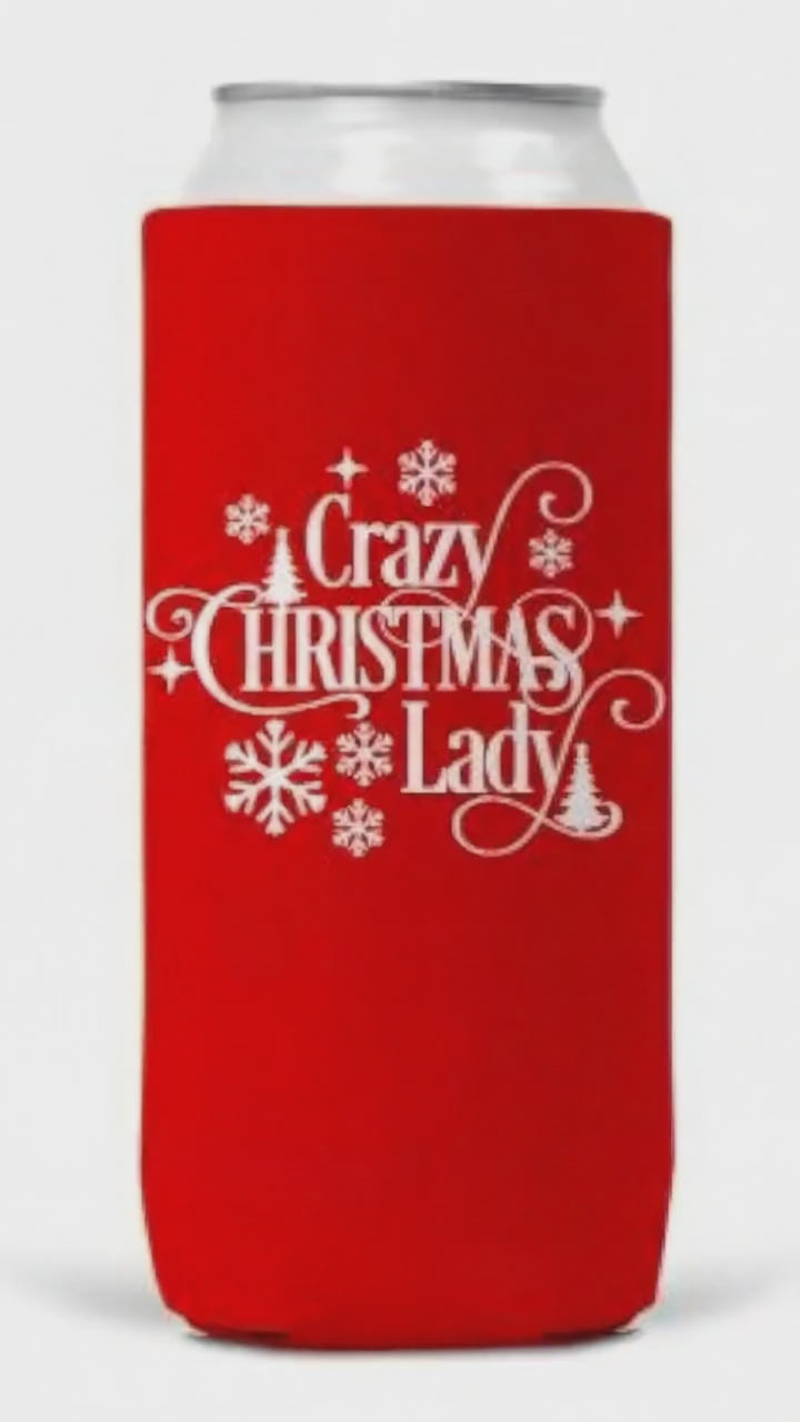 Crazy Christmas Lady Christmas Slim Can Coozie