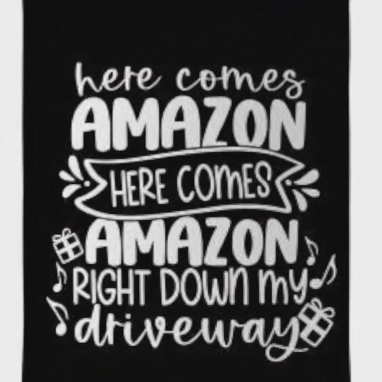 - Screen-printed design with "Here Comes Amazon Right Down My Driveway" for seasonal flair.