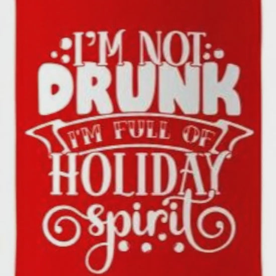 Celebrate the season with a touch of humor and practicality. This 12oz can koozie is screen-printed with “I’m Not Drunk I’m Full Of Holiday Spirit,” designed to fit standard beer or soda cans and keep your drink cozy.