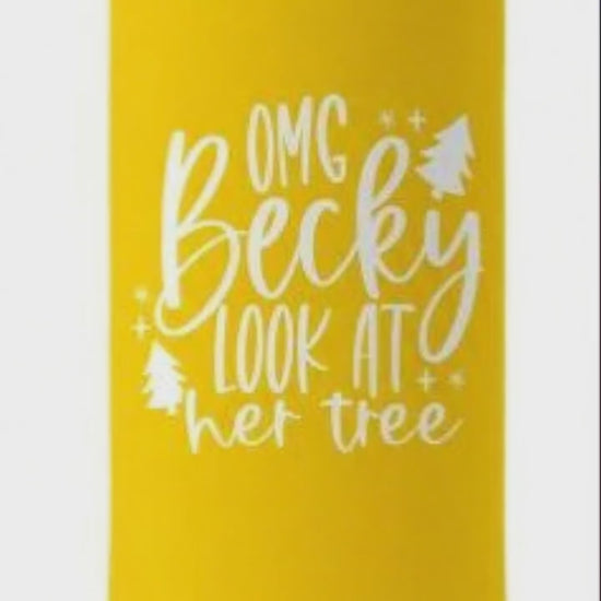 OMG Becky Look At Her Tree Christmas Can Coozie Cooler 12oz Slim Cans. Screen printed on a thick, quality collapsible neoprene can coozie / can cooler. Fits standard slim cans such as energy drinks, seltzer drinks, and skinny beers. Comes with attached C hook to attach to peg or display. OMG Becky Look At Her Tree Christmas Slim Koozie.