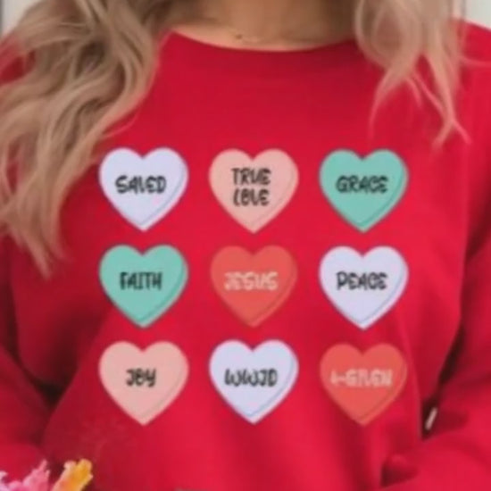 Title: Valentines Day Christian Candy Hearts Sweatshirt Unisex Red
